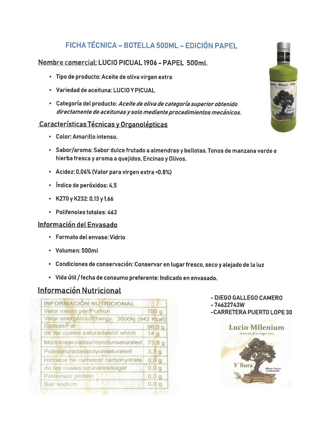Aceite de Oliva Virgen Extra Picual 1906 – 500 ml