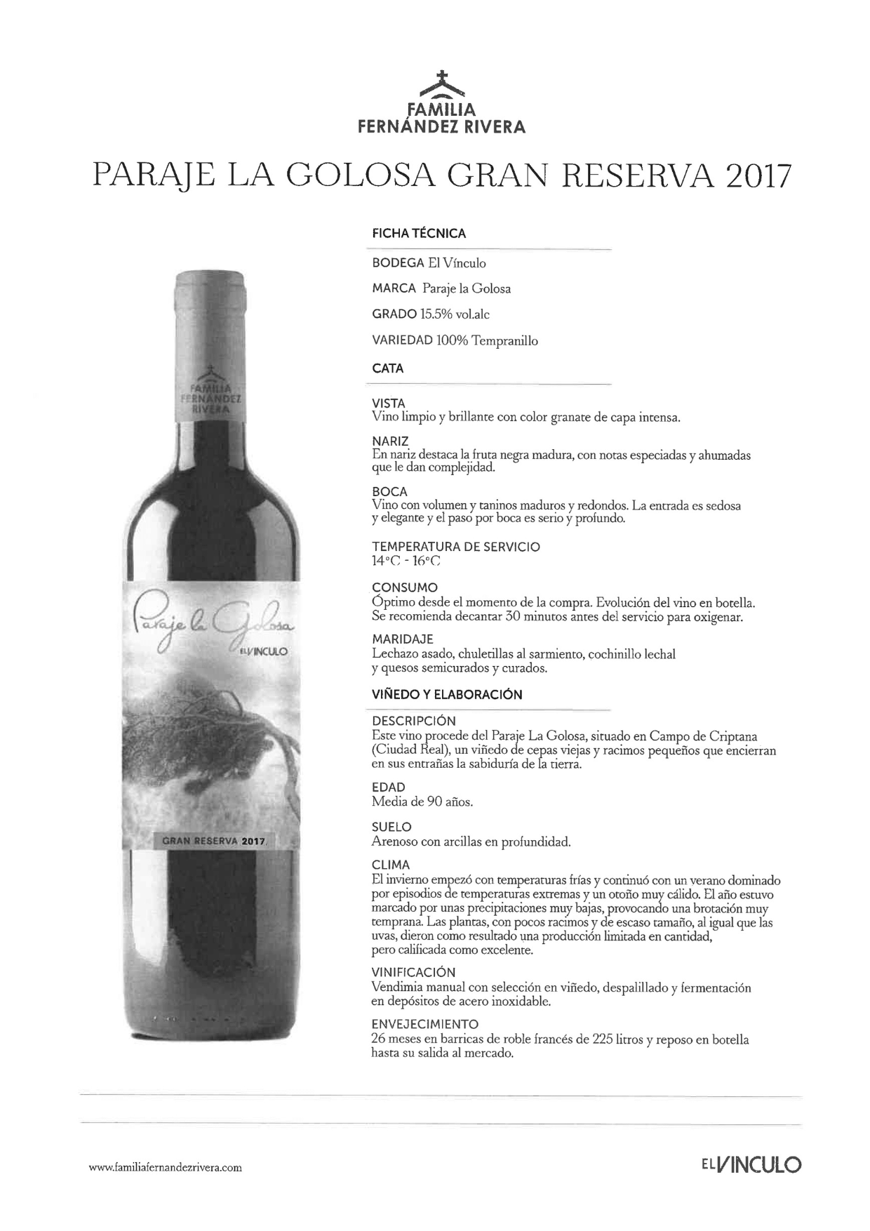 Paraje la Golosa - El Vinculo Botella 75 cl.