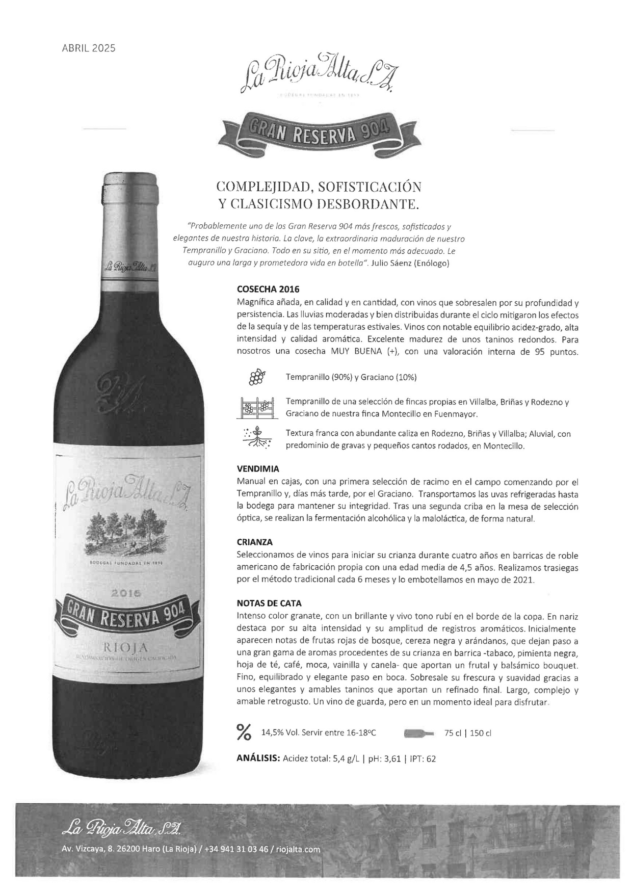 Gran Reserva 904. Magnum 1,5 litros