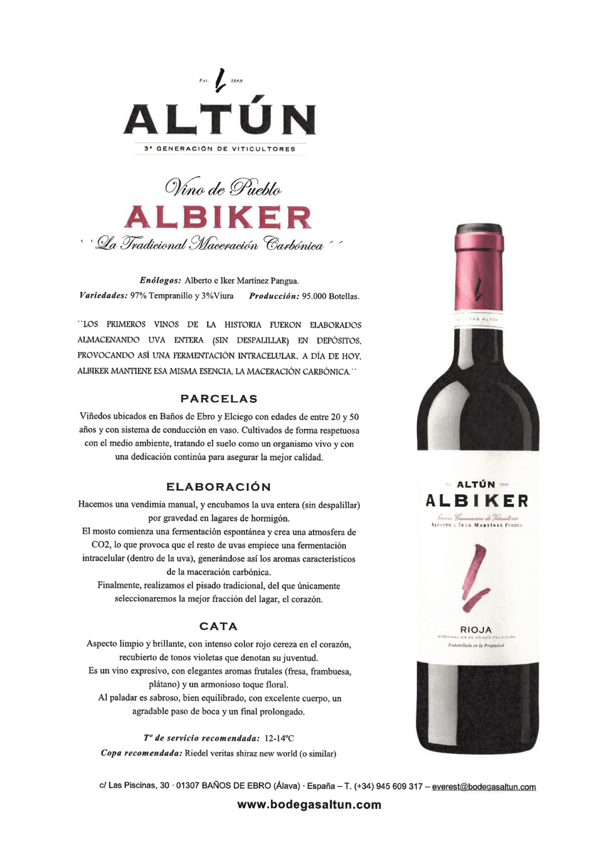 Altún Albiker Botella 75 cl.
