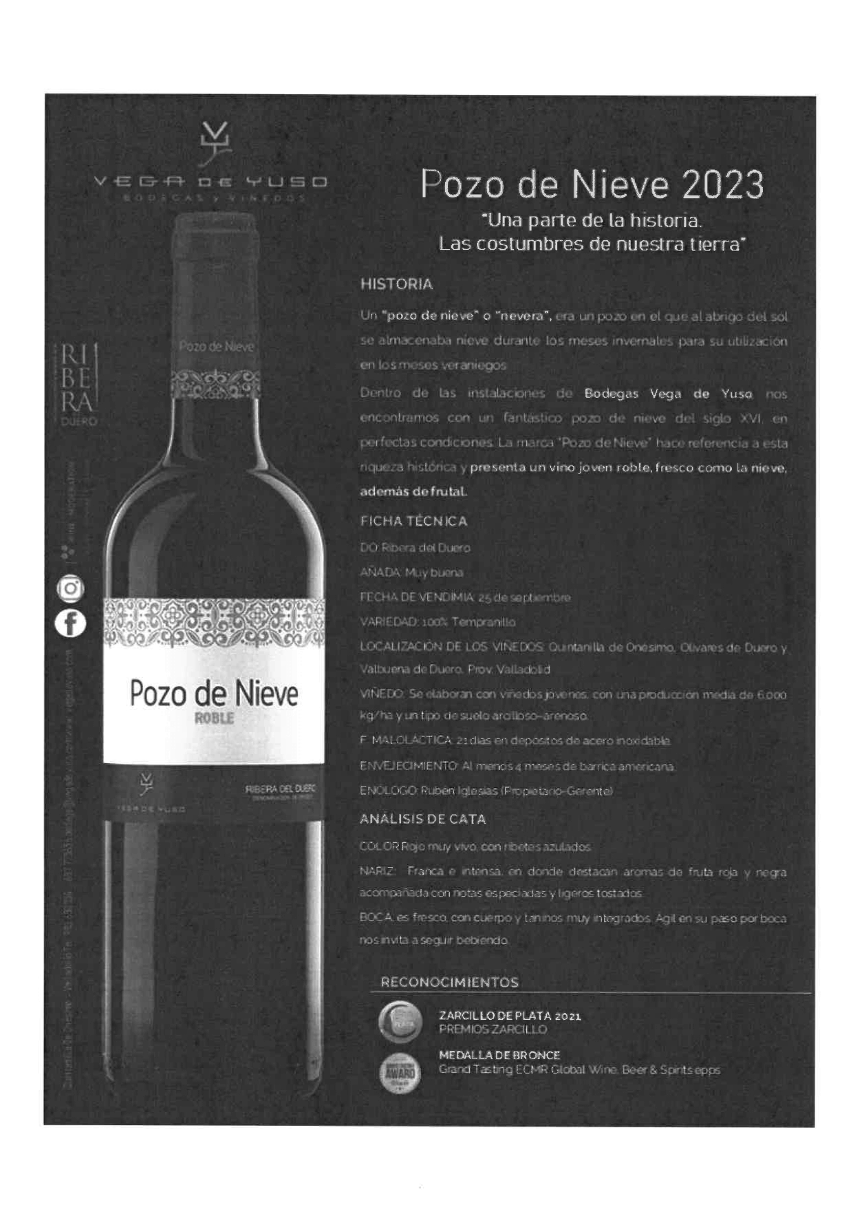 Pozo de Nieve Roble (4 meses) - Vega de Yuso Botella 75 cl.